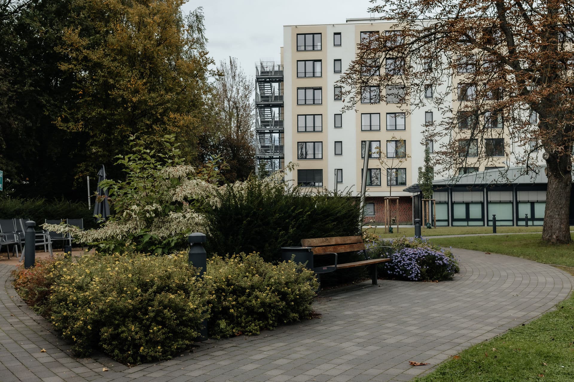 Die großzügigen Grünanlagen von Haus Gracht laden zum Verweilen und Spazieren ein. Es ist auch immer wieder interessant zu beobachten, was sich an und in unserem kleinen Fischteich tut!